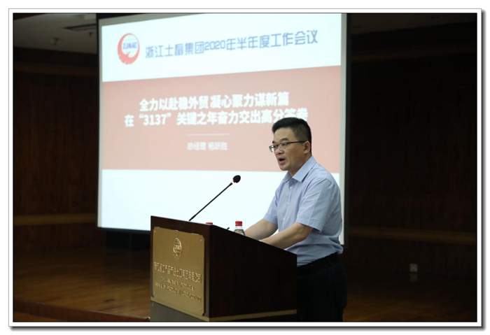 公司黨委副書(shū)記、總經(jīng)理?xiàng)钴S勝在題為《全力以赴穩(wěn)外貿(mào) 凝心聚力謀新篇 在“3137”關(guān)鍵之年奮力交出高分答卷》的報(bào)告中指出,上半年,公司堅(jiān)決貫徹集團(tuán)決策部署,統(tǒng)籌推進(jìn)疫情防控和復(fù)工達(dá)產(chǎn),穩(wěn)外貿(mào)、拓內(nèi)貿(mào)、抓風(fēng)控、強(qiáng)管理、強(qiáng)黨建,以“兩戰(zhàn)贏”為目標(biāo),踐行“爭(zhēng)先創(chuàng)優(yōu)”,有效應(yīng)對(duì)了全球疫情沖擊。他強(qiáng)調(diào),開(kāi)展下半年工作,要以國(guó)貿(mào)集團(tuán)半年度工作會(huì)議精神為指引,牢牢抓住集團(tuán)領(lǐng)導(dǎo)提出的“八個(gè)更加注重、八個(gè)走在前列”、“全力交出‘經(jīng)濟(jì)、改革、發(fā)展、治理、安全、黨建’六張高分報(bào)表”總體要求,加快構(gòu)建國(guó)際國(guó)內(nèi)雙循環(huán),為集團(tuán)奮進(jìn)3137、為全省“重要窗口”建設(shè)作出更多貢獻(xiàn)。