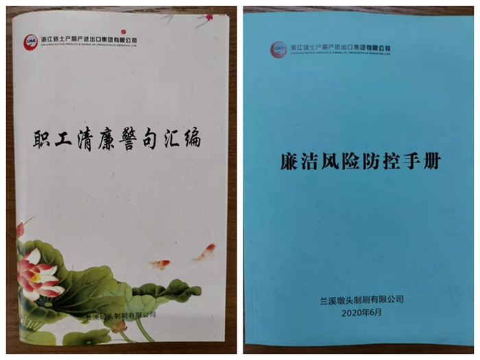 作為浙江省土畜公司下屬開展鬃刷產(chǎn)品研發(fā)和加工生產(chǎn)的骨干工廠,蘭溪墩頭制刷有限公司的效益在同行業(yè)的排名中一直遙遙領(lǐng)先?!敖陙恚S圍繞生產(chǎn)經(jīng)營實際,從風(fēng)險管理鏈條化、風(fēng)險監(jiān)督公開化、風(fēng)險防控信息化三方面,努力推進清廉建設(shè)進車間、進班組、進崗位?!痹邳h支部書記徐統(tǒng)一看來,該廠一直將廉潔風(fēng)險防控融入工廠管控的努力在其中功不可沒。
