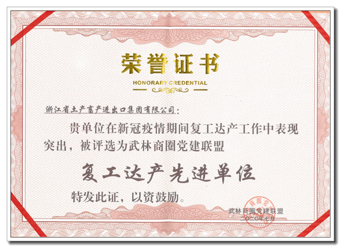 7月15日晚,杭州市武林商圈黨建聯(lián)盟舉行2020年年會,來自聯(lián)盟各成員單位的300余名黨員參加活動。大會表彰了在疫情防控、復(fù)工達(dá)產(chǎn)、黨建共建方面的模范單位以及在疫情防控工作中表現(xiàn)突出的先進(jìn)黨員,省土畜被授予“復(fù)工達(dá)產(chǎn)先進(jìn)單位”稱號。浙江省商務(wù)廳黨組書記、廳長,聯(lián)盟輪值主席盛秋平,杭州市下城區(qū)委書記劉穎出席會議,并為獲得表彰的單位和個人頒發(fā)證書獎杯。