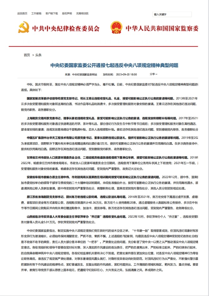 《中央紀(jì)委國(guó)家監(jiān)委公開(kāi)通報(bào)七起違反中央八項(xiàng)規(guī)定精神典型問(wèn)題》