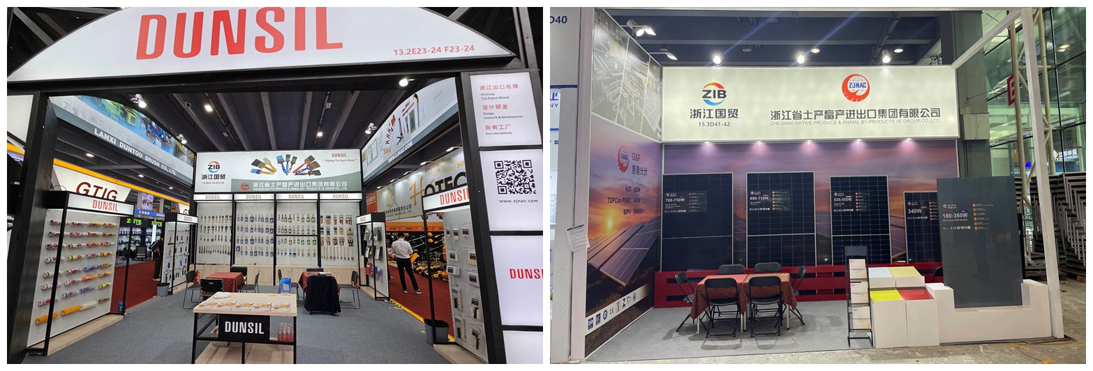 本屆廣交會浙江土畜共組織142個展位,160余名業(yè)務員參展,占浙江省交易團國貿(mào)分團近一半規(guī)模,創(chuàng)下新高,參展展品涵蓋五金工具、新能源、汽配、家居、旅游戶外、餐廚、服裝、家紡、箱包、鞋、食品等一、二、三期展會17個展區(qū)。