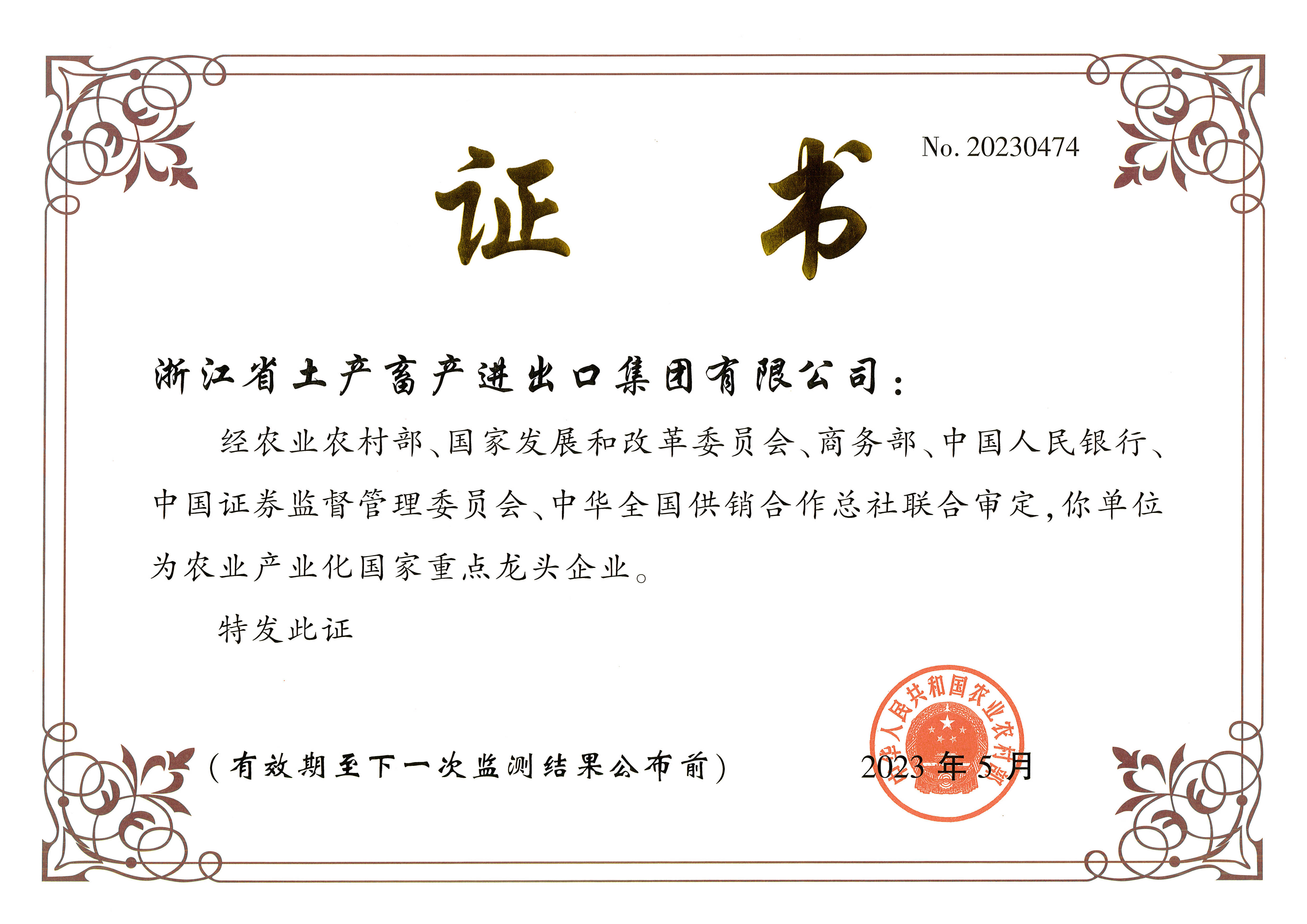 5月,經(jīng)農(nóng)業(yè)農(nóng)村部等八部委聯(lián)合審定,浙江土畜第六次通過(guò)了農(nóng)業(yè)產(chǎn)業(yè)化國(guó)家重點(diǎn)龍頭企業(yè)監(jiān)測(cè),展現(xiàn)出對(duì)企業(yè)經(jīng)營(yíng)成績(jī)及在產(chǎn)業(yè)振興、行業(yè)帶動(dòng)、聯(lián)農(nóng)助農(nóng)等方面工作的認(rèn)可,也激勵(lì)公司上下為全面推進(jìn)鄉(xiāng)村振興、加快建設(shè)農(nóng)業(yè)強(qiáng)國(guó)貢獻(xiàn)更多力量。